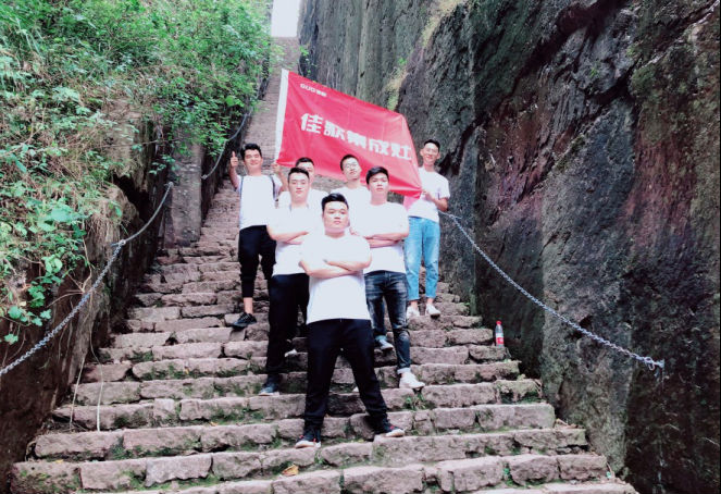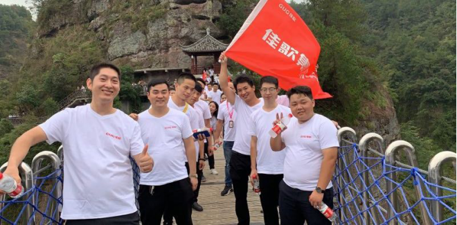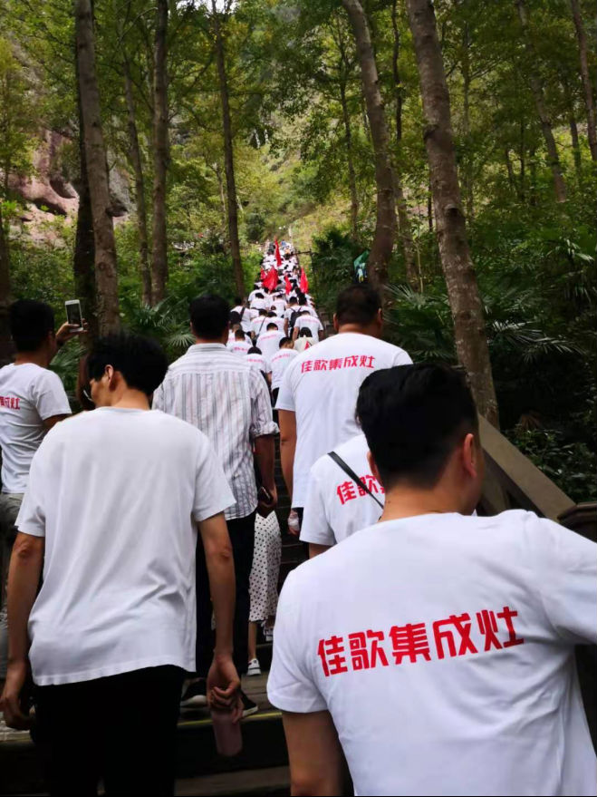 在緊張的工作中得到放松,感受綠水青山的風(fēng)景。10月6日,佳歌集成灶組織全體人員統(tǒng)一出發(fā)到新昌穿巖十九峰進行團建活動,統(tǒng)一的著裝展現(xiàn)出佳歌人的氣勢。