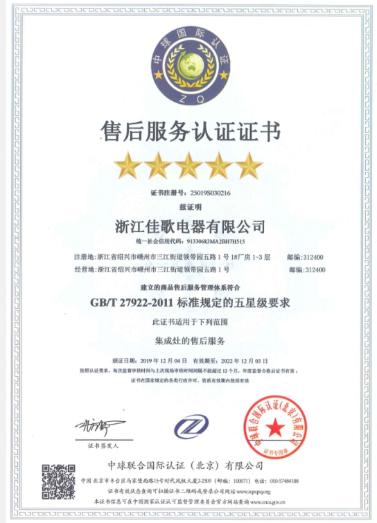 售后服務(wù)是產(chǎn)品售出后的關(guān)鍵環(huán)節(jié),其專業(yè)性、便捷性和人性化程度直接影響著消費(fèi)者的整體購買體驗(yàn)。日前,經(jīng)權(quán)威機(jī)構(gòu)認(rèn)證,佳歌集成灶達(dá)到國家標(biāo)準(zhǔn),一舉摘下售后服務(wù)的桂冠——五星級售后服務(wù)認(rèn)證,此前,眾多知名企業(yè)也獲得過此認(rèn)證。
