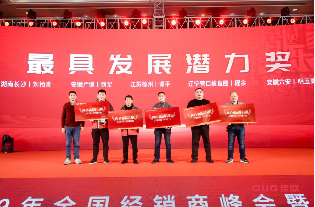 袁總表示佳歌會始終堅持以客戶為本,以經(jīng)銷商為本,實(shí)現(xiàn)共贏。佳歌能在短時間內(nèi)收獲如此成就,離不開在場工作人員及全體經(jīng)銷商的付出和陪伴。未來,佳歌還會加強(qiáng)終端政策幫扶,增加全國各區(qū)域網(wǎng)點(diǎn)鋪設(shè),以強(qiáng)勢的姿態(tài)面對接下來的挑戰(zhàn)。袁總的致辭極大的增強(qiáng)了大家的信心,贏得了經(jīng)銷商的一致贊賞。