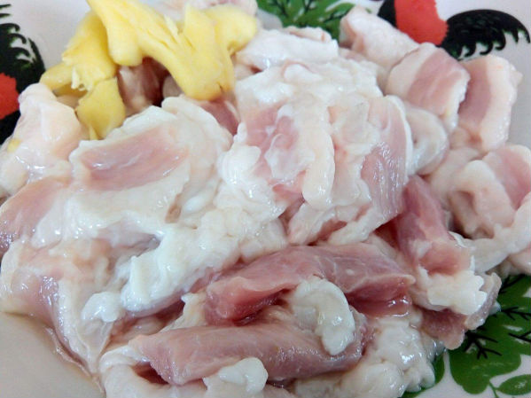 1、魚肉切片,用生粉拌勻。