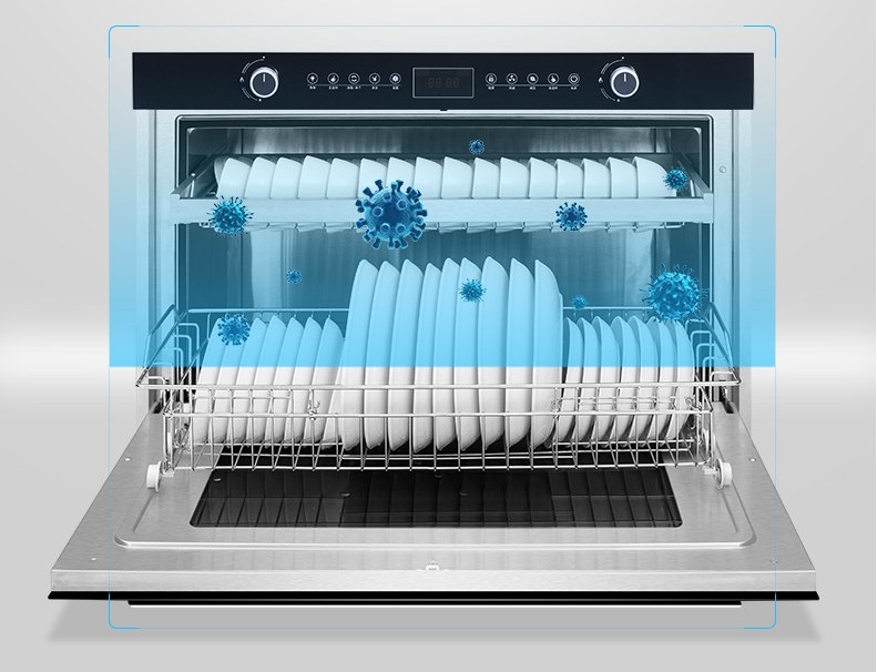 傳統(tǒng)的雙抽式消毒柜由于空間分隔的關(guān)系,導(dǎo)致7寸以上的盤子只能疊放,消毒烘干對(duì)中間的盤子根本無(wú)法起效,而10寸的大盤只能放在臺(tái)面上“流浪”。