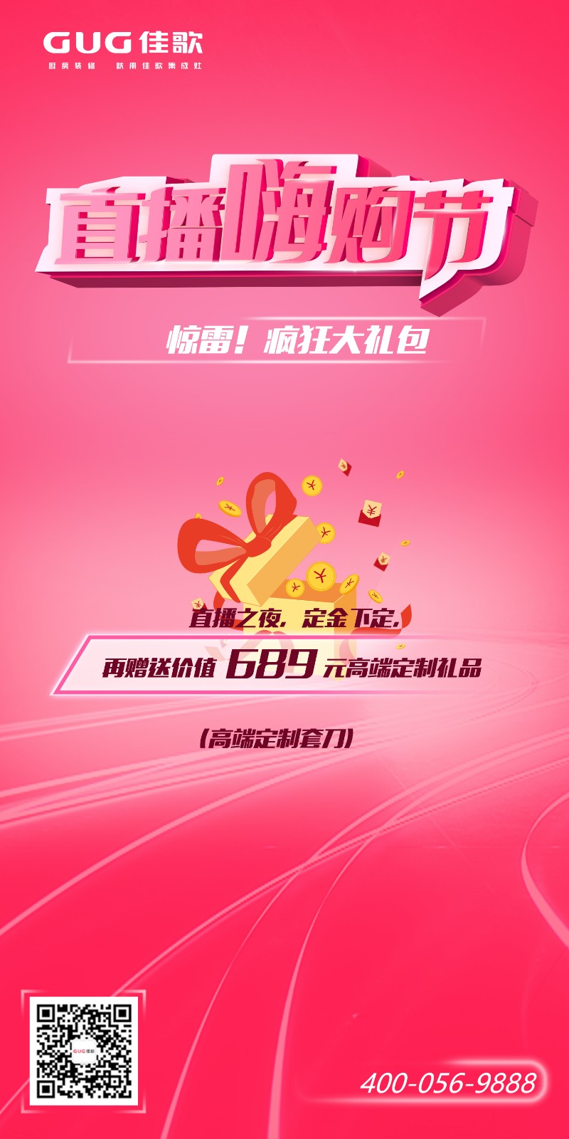 直播之夜定金下定,額外贈(zèng)送價(jià)值689元高端定制禮品,佳歌集成灶就是這么壕!