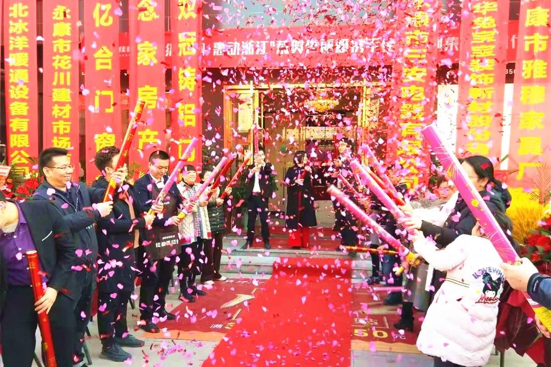 開業(yè)當天,門店外場在開業(yè)鮮花及大紅條幅的裝飾下,一片繽紛璀璨的開業(yè)氛圍。永康本地新老朋友前來共襄盛典,現(xiàn)場彩鍛鋪天,熱鬧非常。
