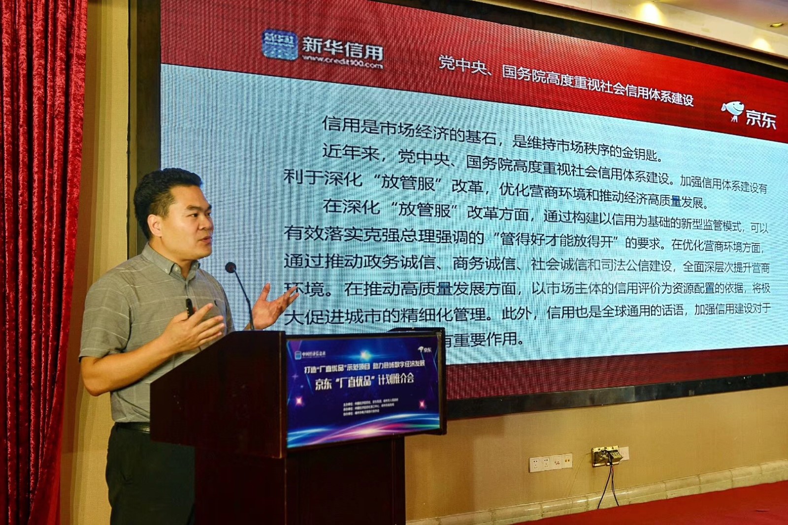 圍繞廠直優(yōu)品計劃這一推廣活動,嵊州市委常委、副市長粱瑜、中國經濟信息社領導、中國經濟信息社新華信用負責人、京東相關業(yè)務負責人分別發(fā)表了講話。