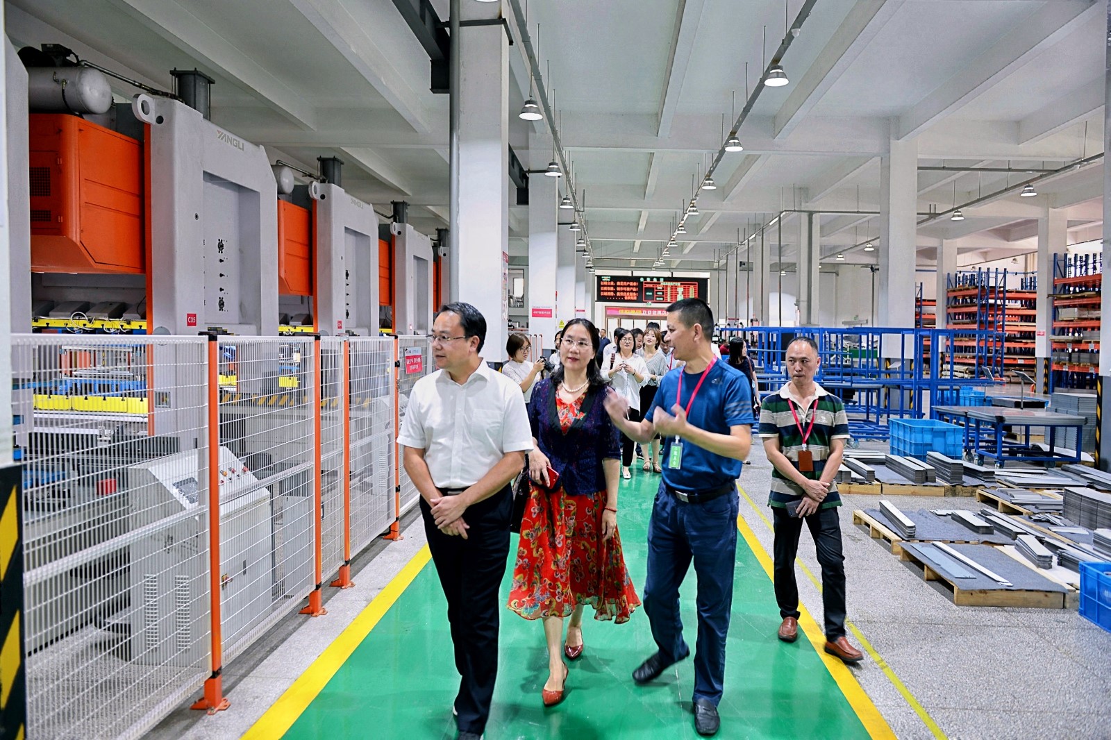 會議結束,嵊州市委常委、副市長梁瑜,中國經濟信息社浙江中心主任呂雪輝,京東零售子集團平臺業(yè)務中心總監(jiān)、廠直優(yōu)品計劃負責人何大軍,中國經濟信息社新華信用事業(yè)部總經理李偉,嵊州市商務局局長錢凱豐等代表一行蒞臨佳歌集成灶,佳歌集成灶董事長袁向東、總經理袁海濱、市場部部長過龍超、電商部部長袁航接待并陪同參觀。