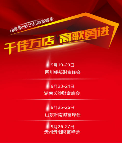 八月結(jié)束了,但佳歌集成灶“千佳萬(wàn)店 高歌勇進(jìn)”全國(guó)優(yōu)商甄選計(jì)劃并沒(méi)有停下腳步,錯(cuò)過(guò)了八月沒(méi)有關(guān)系,九月的財(cái)富峰會(huì)已經(jīng)安排上了,就等你!